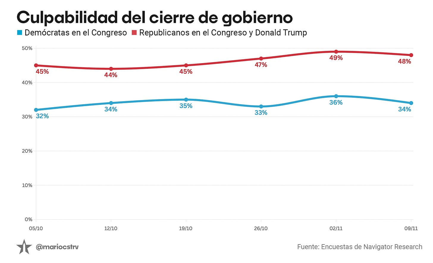 Los estadounidenses, en las principales encuestas, culpaban más a los republicanos y a Trump del cierre, que a los demócratas.
